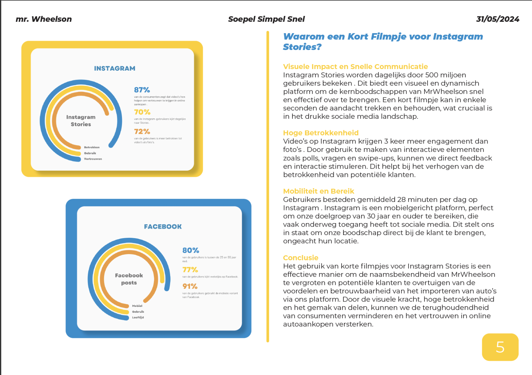 De opdrachtgever voor dit project was Mr.Wheelson. Vanuit de Haagse Hogeschool hebben wij een briefing gekregen over het bedrijf en wat de doelen waren voor de campagne. Wat Mr.Wheelson graag wilde is naamsbekendheid, vertrouwen opbouwen met zijn klanten en Laten zijn dat het importeren helemaal niet moeilijk hoeft te zijn. Dit waren ook de punten waar wij als team verder mee zijn gegaan.