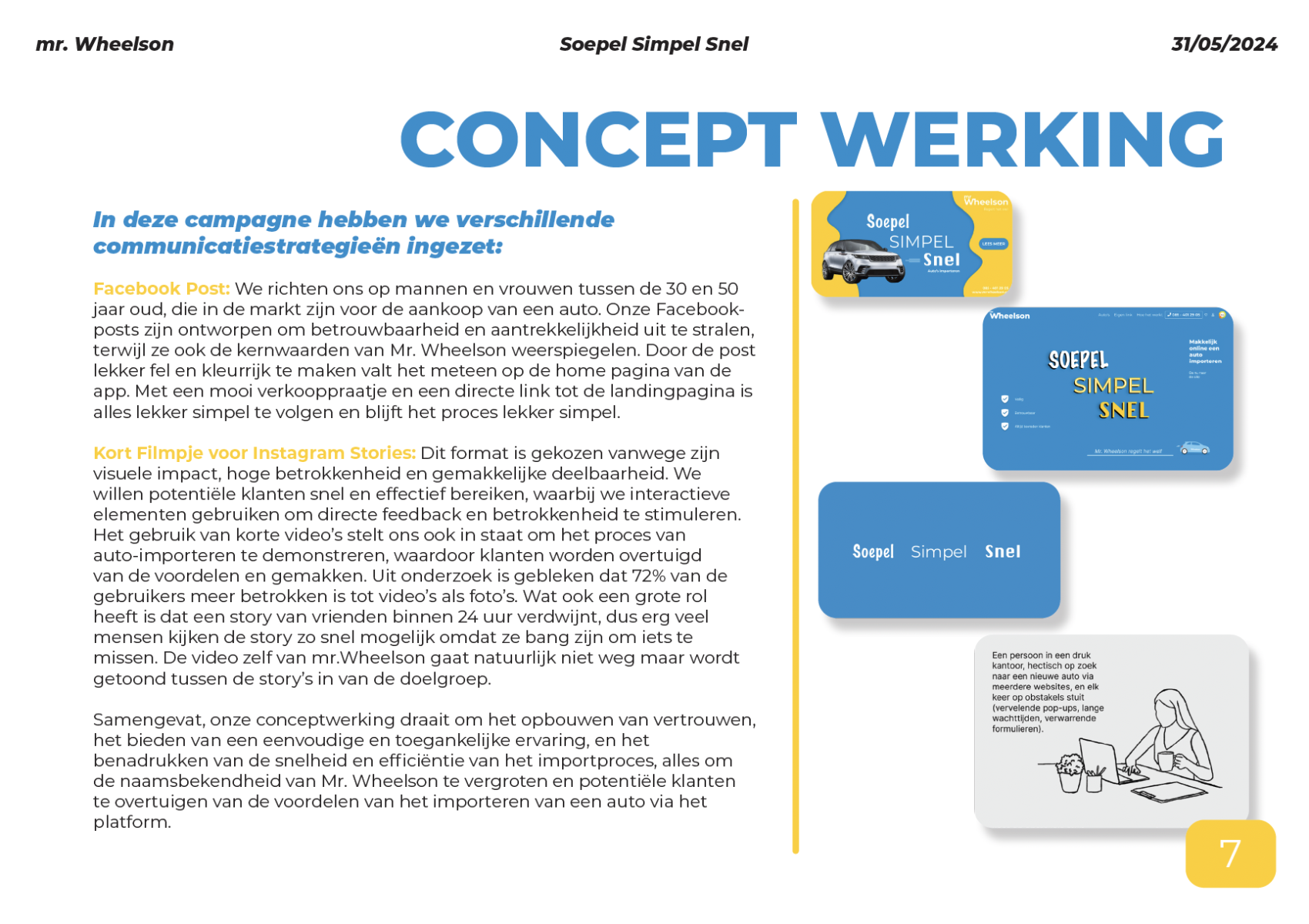 De opdrachtgever voor dit project was Mr.Wheelson. Vanuit de Haagse Hogeschool hebben wij een briefing gekregen over het bedrijf en wat de doelen waren voor de campagne. Wat Mr.Wheelson graag wilde is naamsbekendheid, vertrouwen opbouwen met zijn klanten en Laten zijn dat het importeren helemaal niet moeilijk hoeft te zijn. Dit waren ook de punten waar wij als team verder mee zijn gegaan.