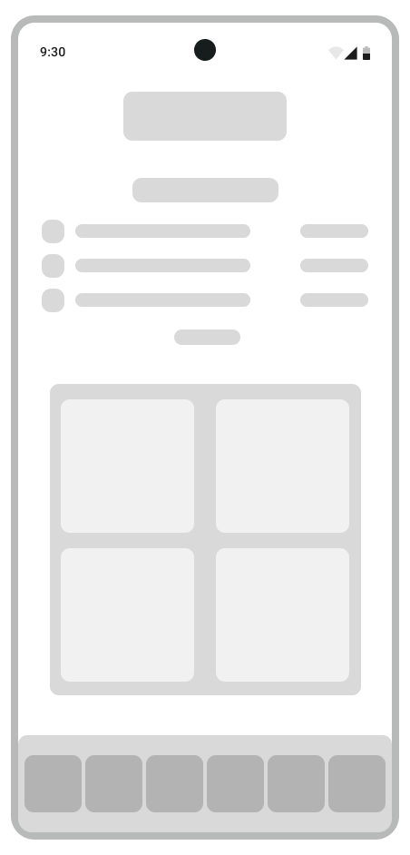 Door middel van wireframes in Figma te maken was ik begonnen met een low-fid prototype. Door de wiregrames daarna ook clickable te maken en te animeren wilde ik een beeld hebben van hoe de basics de layout er later uit moesten zien.